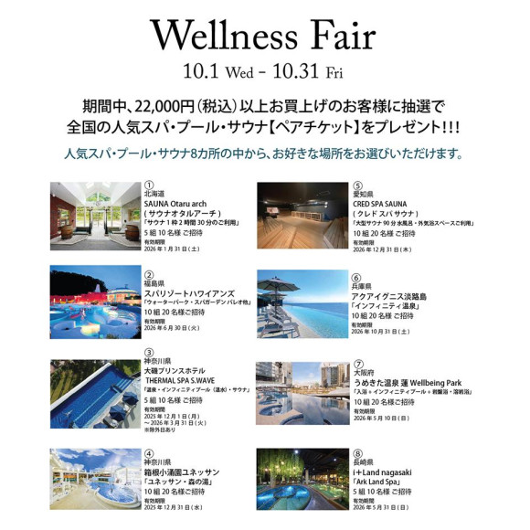 You will receive a popular spa sauna pool pair ticket from all over the country by lottery!