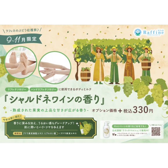 【Scent of Chardonnay Wine】 appears in the body milk used for reflexology and hand reflexology this year!