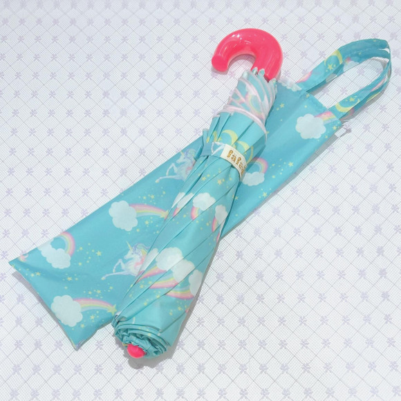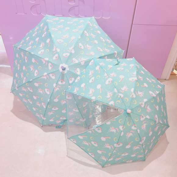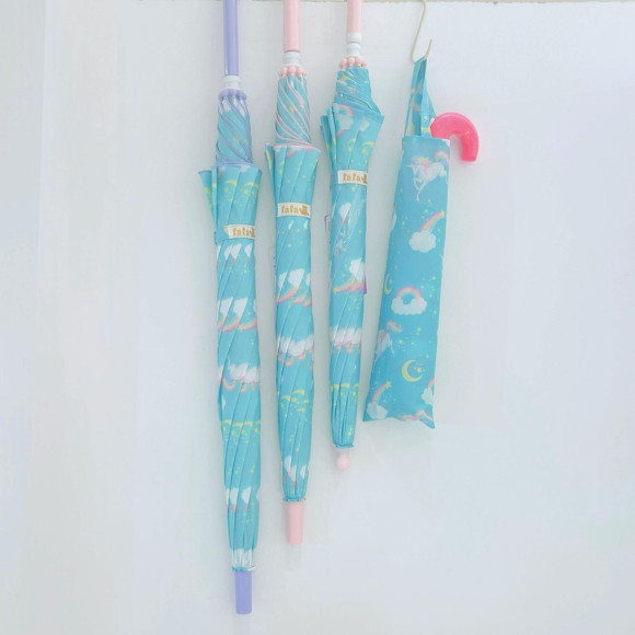 The bright colored umbrella stands out even when it's dark on rainy days.♡